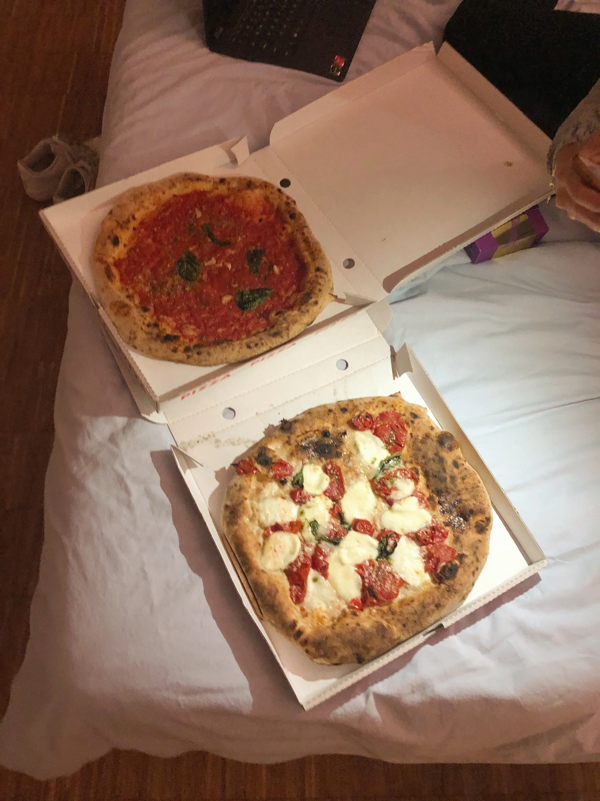We assumed that a shop called Pasta Madre would sell pasta. How naive of us! They only sold pizzas and all the pizzas were variations of tomato sauce and cheese. Frugally, we tried to take a bus that never showed up so we arrived back to our AirBnb with cold pizzas only to realize they weren’t sliced. It turned out to be quiet good.