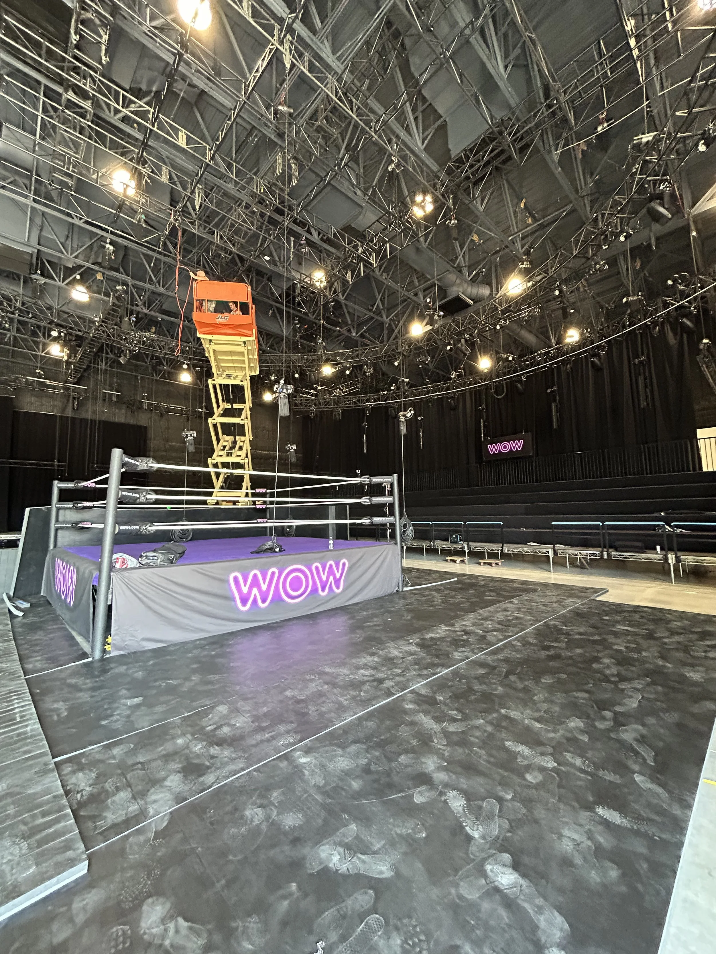 After wrapping at the studio, WOW had 4 weeks to plan a one night shoot on Fremont Street in Las Vegas. Being under the casino lights and canopy added to the electric wrestling atmosphere.